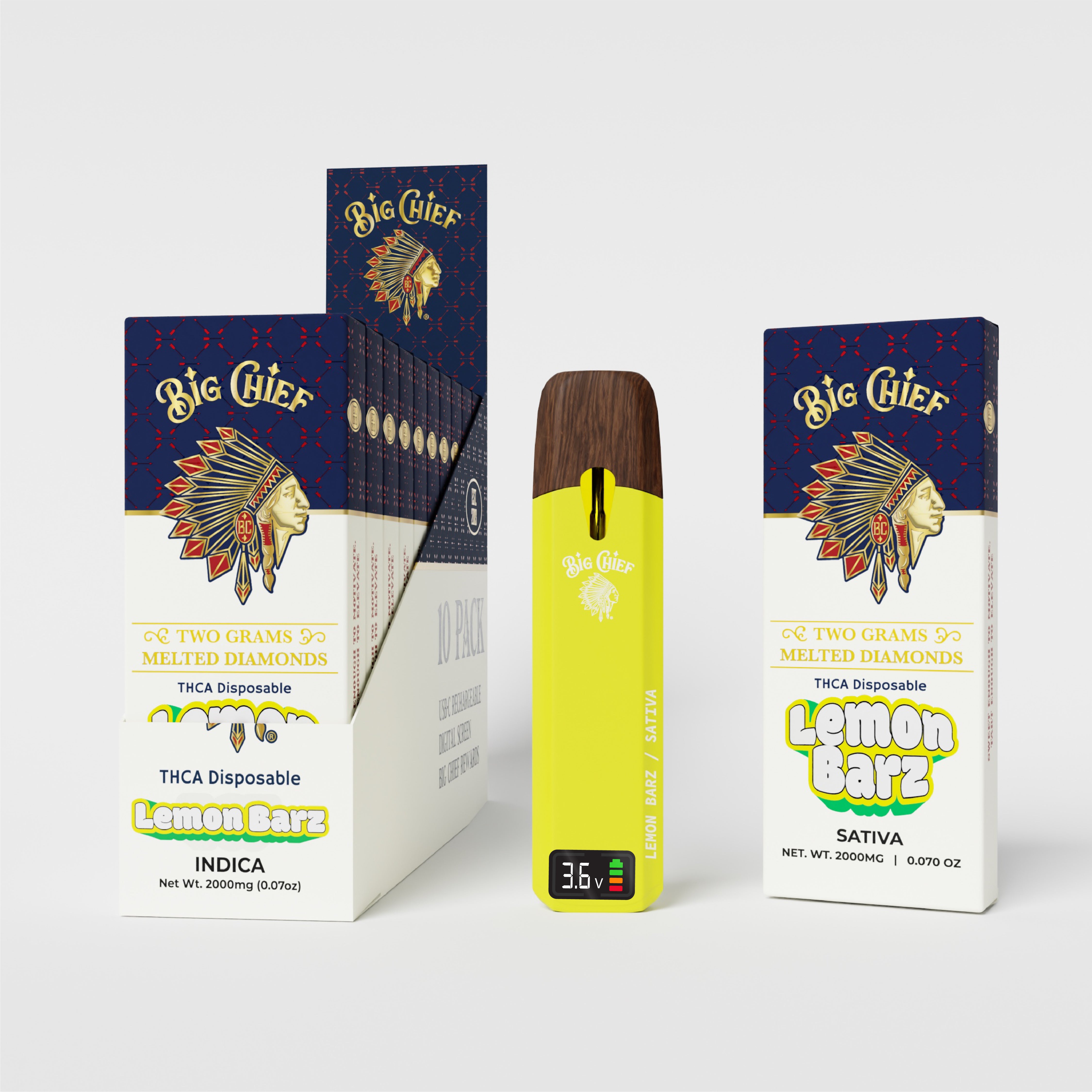 BIG CHIEF 2G MELTED DIAMOND DISPOSABLE LEMON BARZ 10PACK